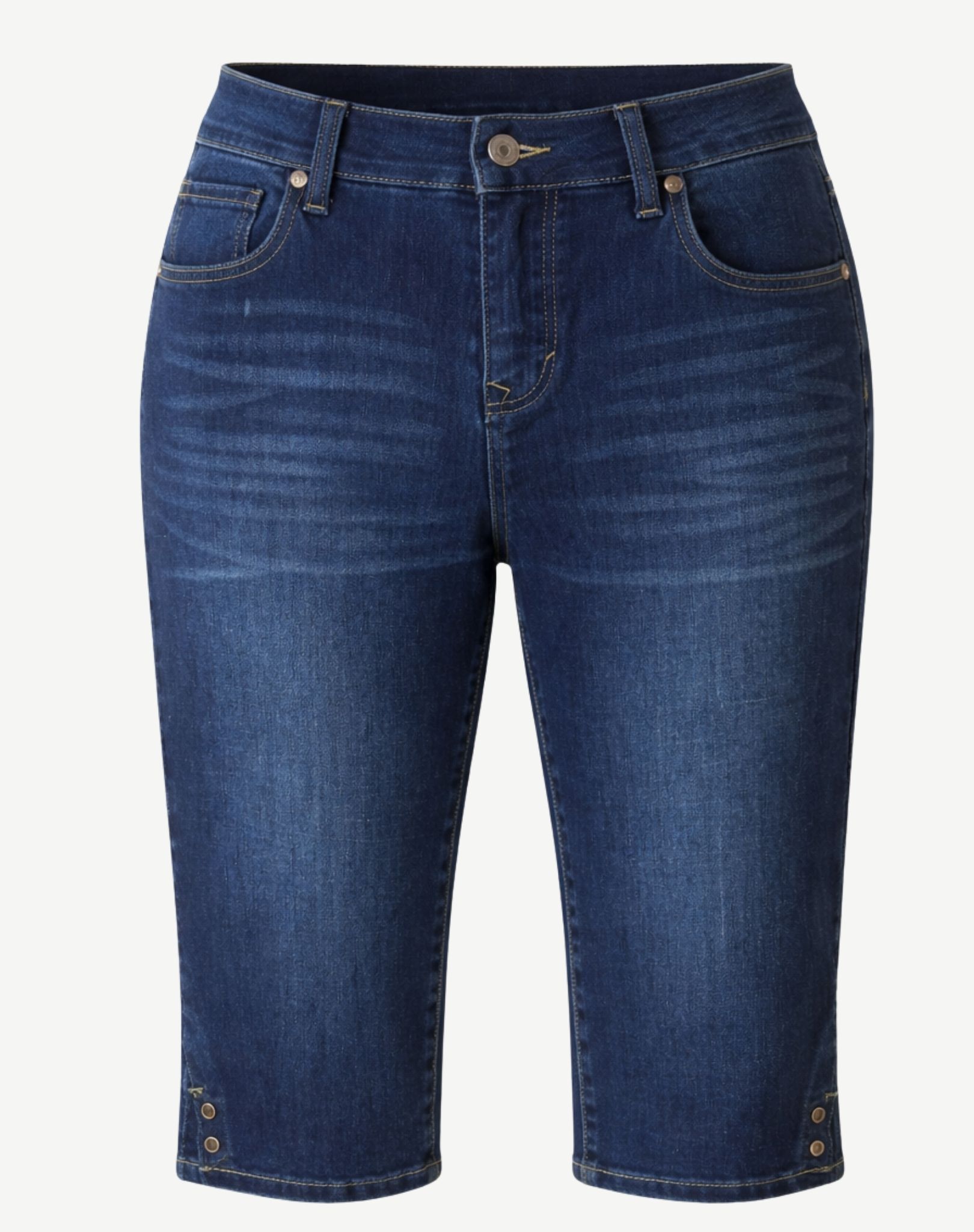 Step into effortless everyday style with the Adriana Wash 3/4 Denim Pants. Designed with a comfortable mid‑rise waistband and classic belt loops, these pants feature a stud and zip closure, two front pockets, and two back pockets for practical wear. The soft stretch denim blend offers a flattering fit that moves with you, while the 3/4 length makes them perfect for warm days or relaxed, casual outfits. A versatile wardrobe staple you’ll reach for again and again.