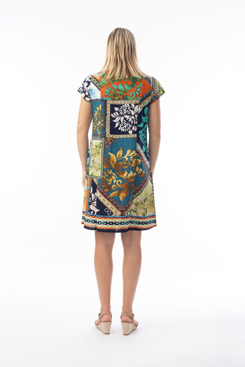 Embrace the sunny weather in our Cabo Fria dress, perfect for beach holidays. Featuring cap sleeves and a comfortable round neckline, this dress combines effortless style and comfort. Ideal for soaking up the sun or lounging seaside, it's a must-have for your summer wardrobe.