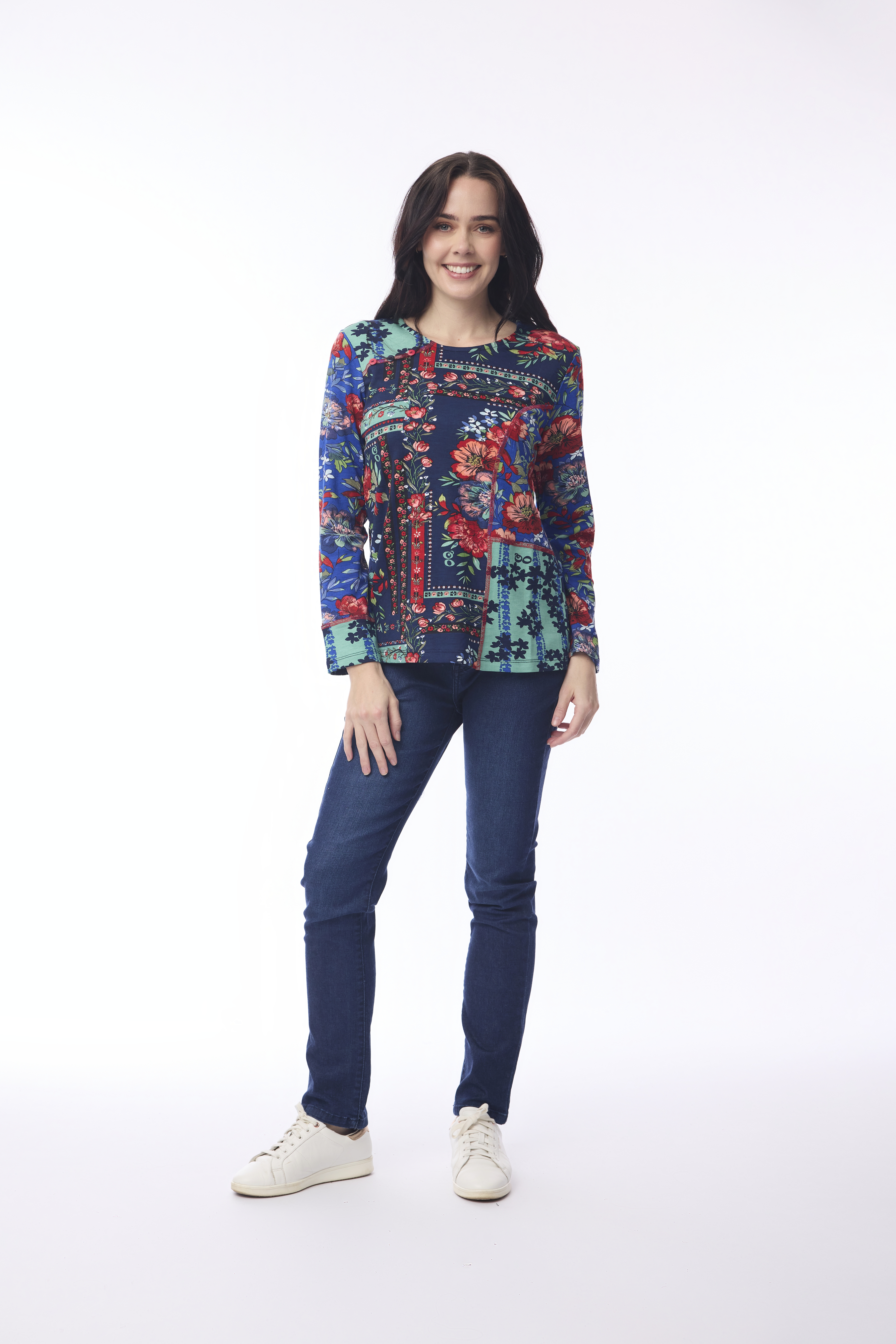 The Ivanova Patch T‑Shirt is a versatile everyday basic with a playful edge. Crafted from a soft rayon blend, it features a round neckline, long sleeves, and a fun patch print that keeps you comfortable and stylish.