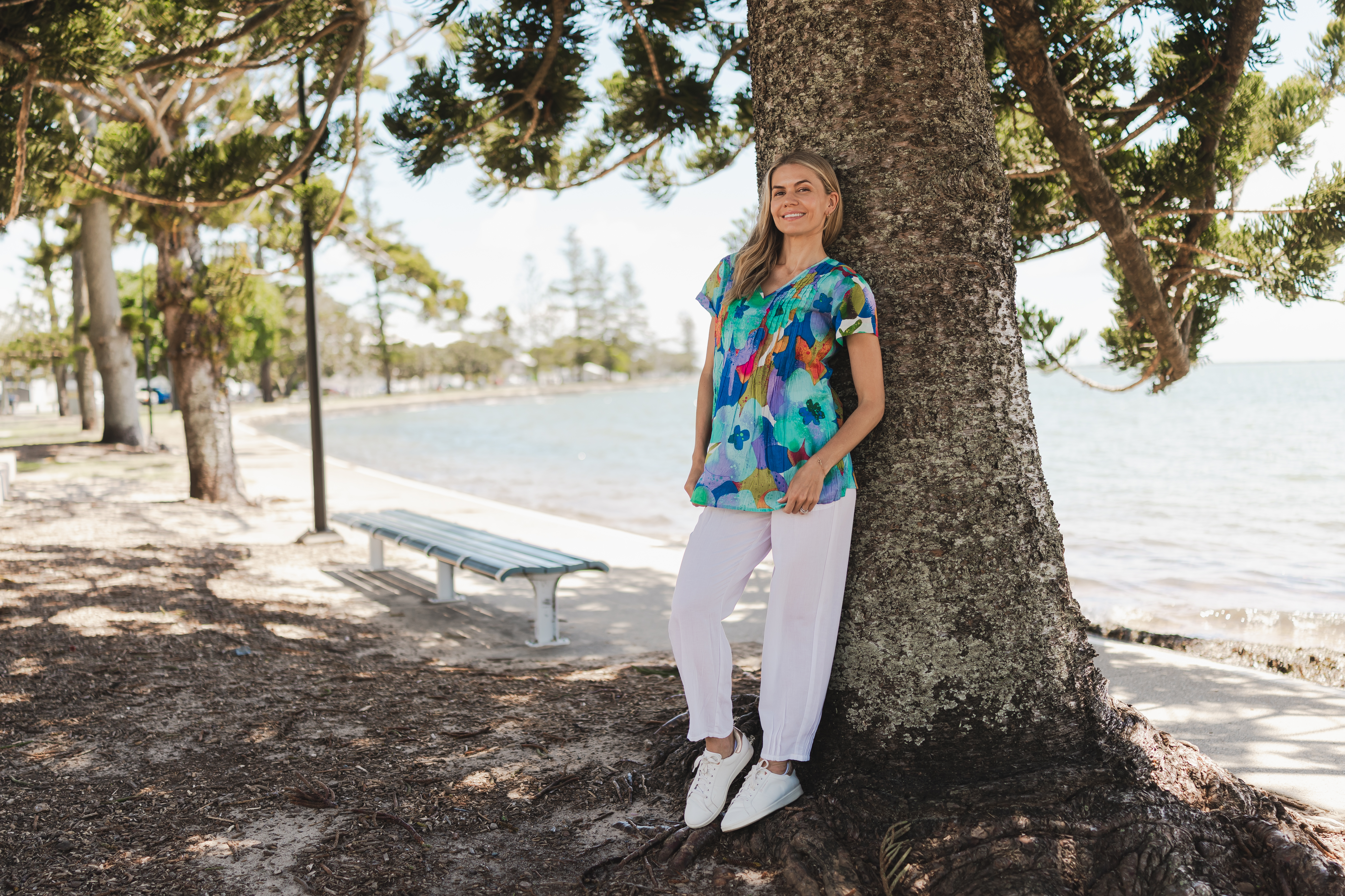 Elevate your summer wardrobe with our beautiful Kayla cotton blouse, featuring a chic subtle V neckline, cap sleeves and pintuck detailing at the bust. Designed with vibrant prints, it embodies the essence of hot summer days and effortless style.