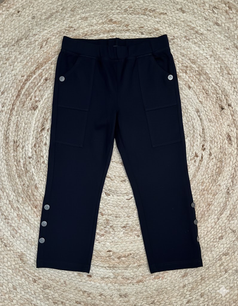 - Button detail on the lower leg
