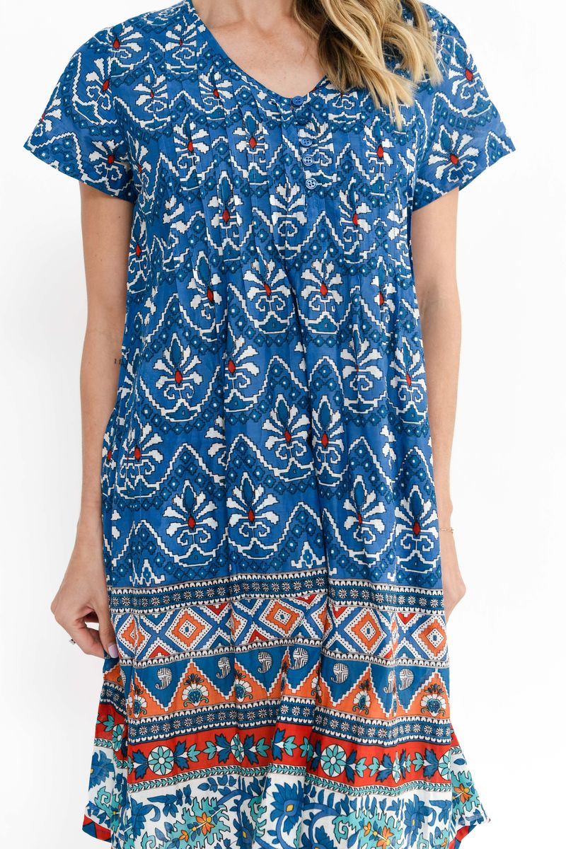 Experience summer in full bloom with our Nicola. Made from 100% cotton, and available in an array of vibrant summer prints. An One Summer must have, featuring cap sleeves, built in pockets, and pintuck detailing along the bust ensuring effortless style all summer long.
