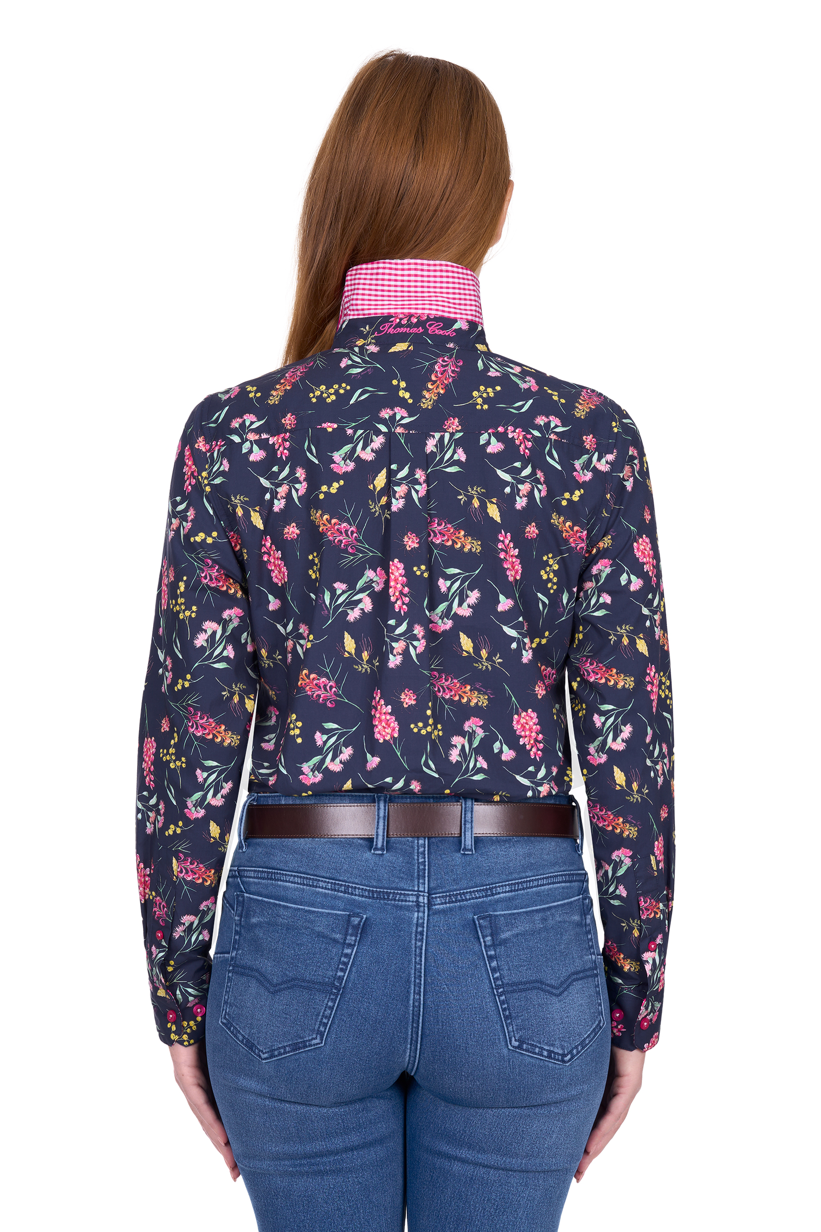 The Serena Long Sleeve Shirt is a beautifully crafted piece featuring Thomas Cook’s original hand‑drawn print. Thoughtful detailing elevates this classic style — from contrast gingham trims to grosgrain taping inside the neck and cuffs. Delicate pintuck work at the sleeve cuffs, finished with criss‑cross embroidery, adds a refined, feminine touch. Made from crisp 100% cotton poplin, it offers breathable comfort and a polished look perfect for work, weekends, or dressed‑up occasions. Finished with the signature horseman embroidery on the chest, it’s a timeless shirt with standout charm.