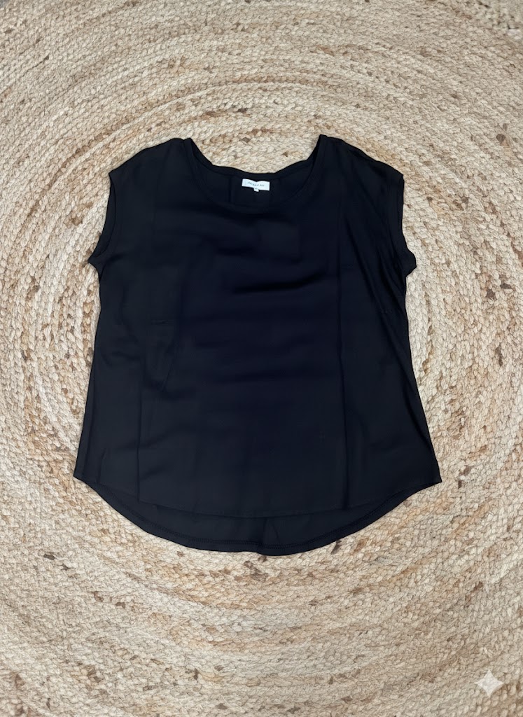 The top has a v neck with tie, half button front in a boho style with cap sleeve and frill. The top is made from 100% rayon. The colour is black.
