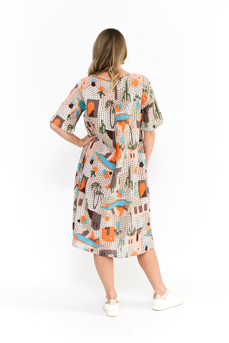Introducing our beautiful Yvonne Knee-Length Dress, designed for summer bliss. Featuring a flattering round neck and 3/4 sleeves, it boasts stunning prints that capture the essence of the season. Crafted with a cotton slub for comfort and style, this dress effortlessly transitions from day to night. Embrace sunny days in elegance and ease with this essential piece from our summer collection