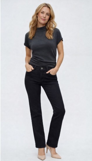 The Black Comfort Waist Jeans are designed for everyday ease, offering a flattering fit with just the right amount of stretch. Featuring a comfort waistband with belt loops, a stud and zipper closure, front and back pockets, and a straight‑leg cut, these jeans are made to move with you. Crafted from a soft cotton‑spandex blend, they deliver comfort, shape retention, and timeless style — a reliable wardrobe staple for any day of the week.
