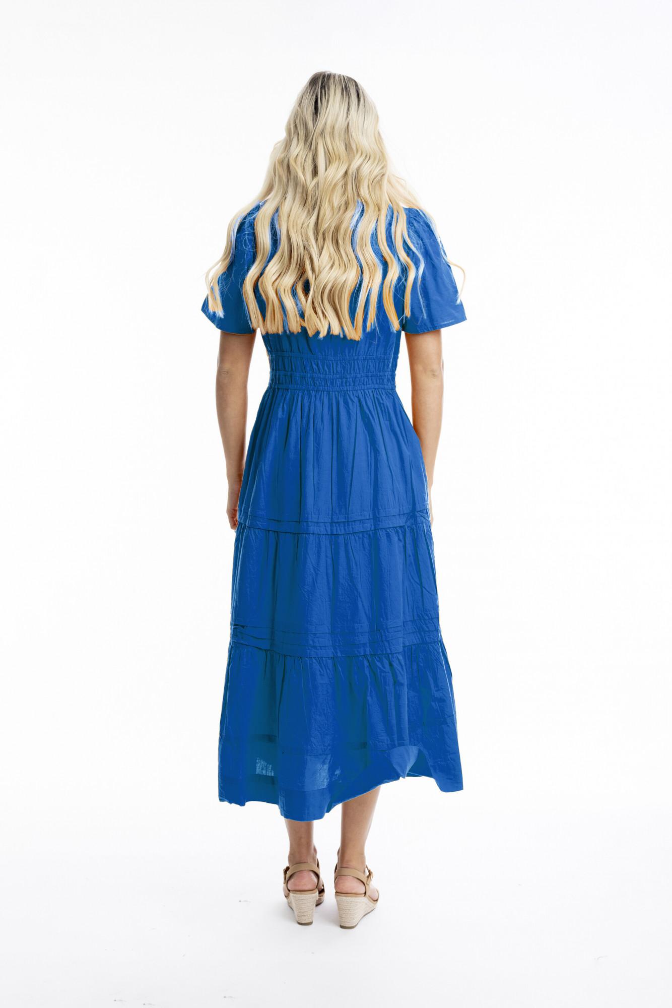 Electric Blue Poplin Maxi Ruched Waist Dress