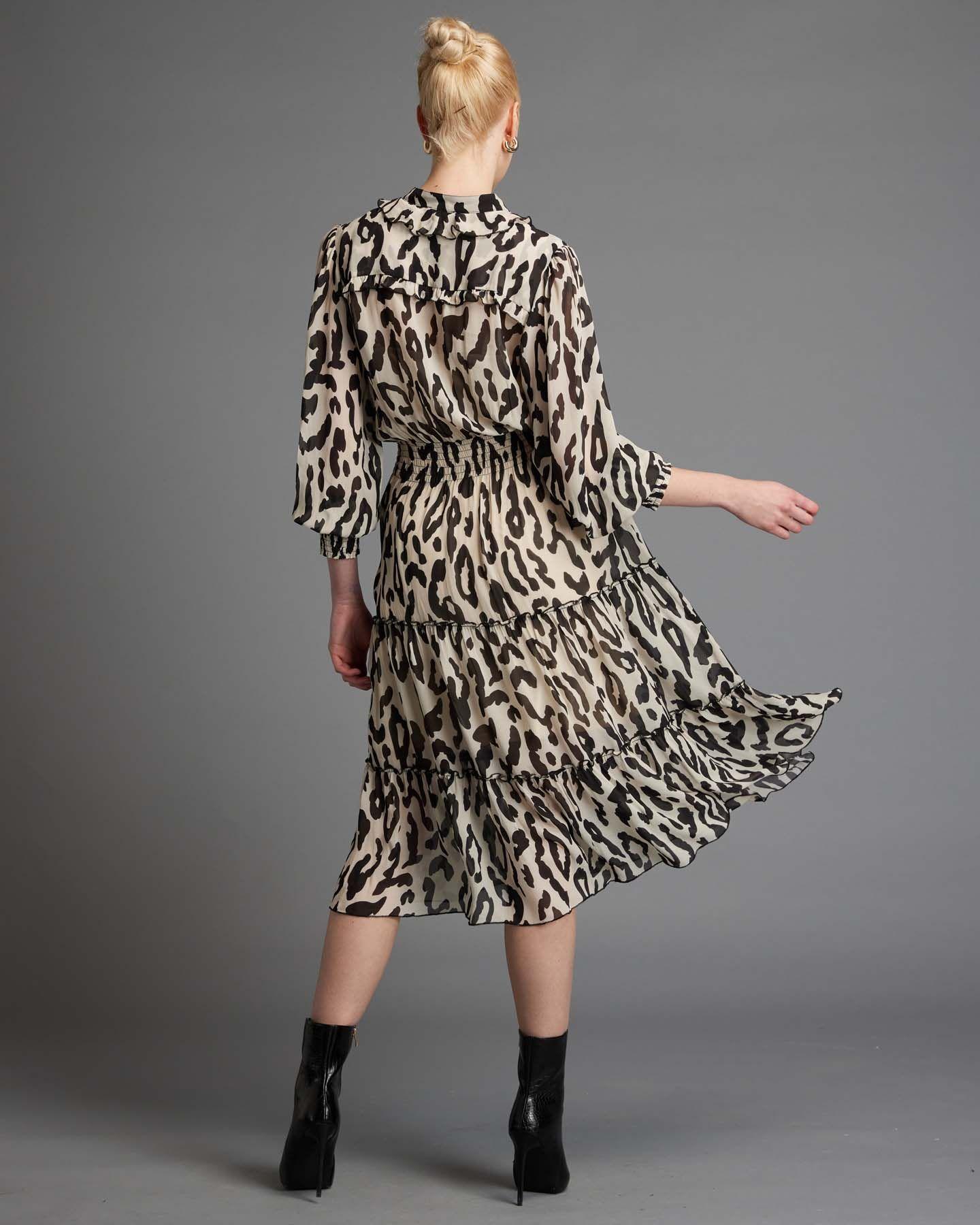 Fate + Becker Dreaming Cream Animal Print Midi Dress