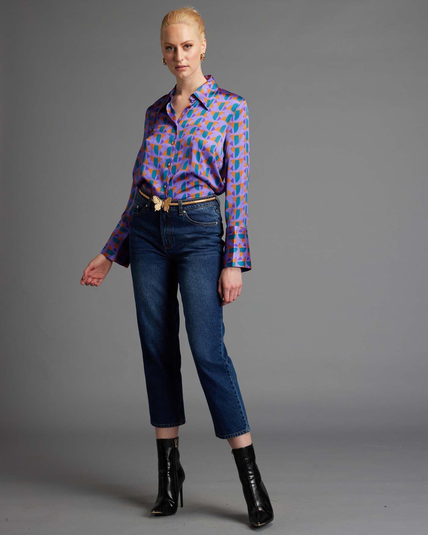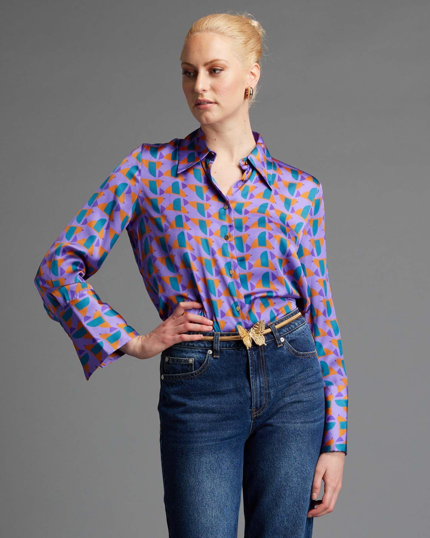 Classic shirt construction, Regular fit, Front gold button closure, Long sleeve with cuff.