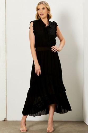 When you want to make a statement, this dress is the perfect choice. With its beautiful elongated shape, it will make you stand out from the rest. The viscose georgette fabric is soft and comfortable, while the shirred shoulder and button-through design make it easy to wear. With a shaped hem and lined design, this dress is perfect for parties or special occasions. The frilled hem also adds a touch of luxury, making it the perfect finishing touch.