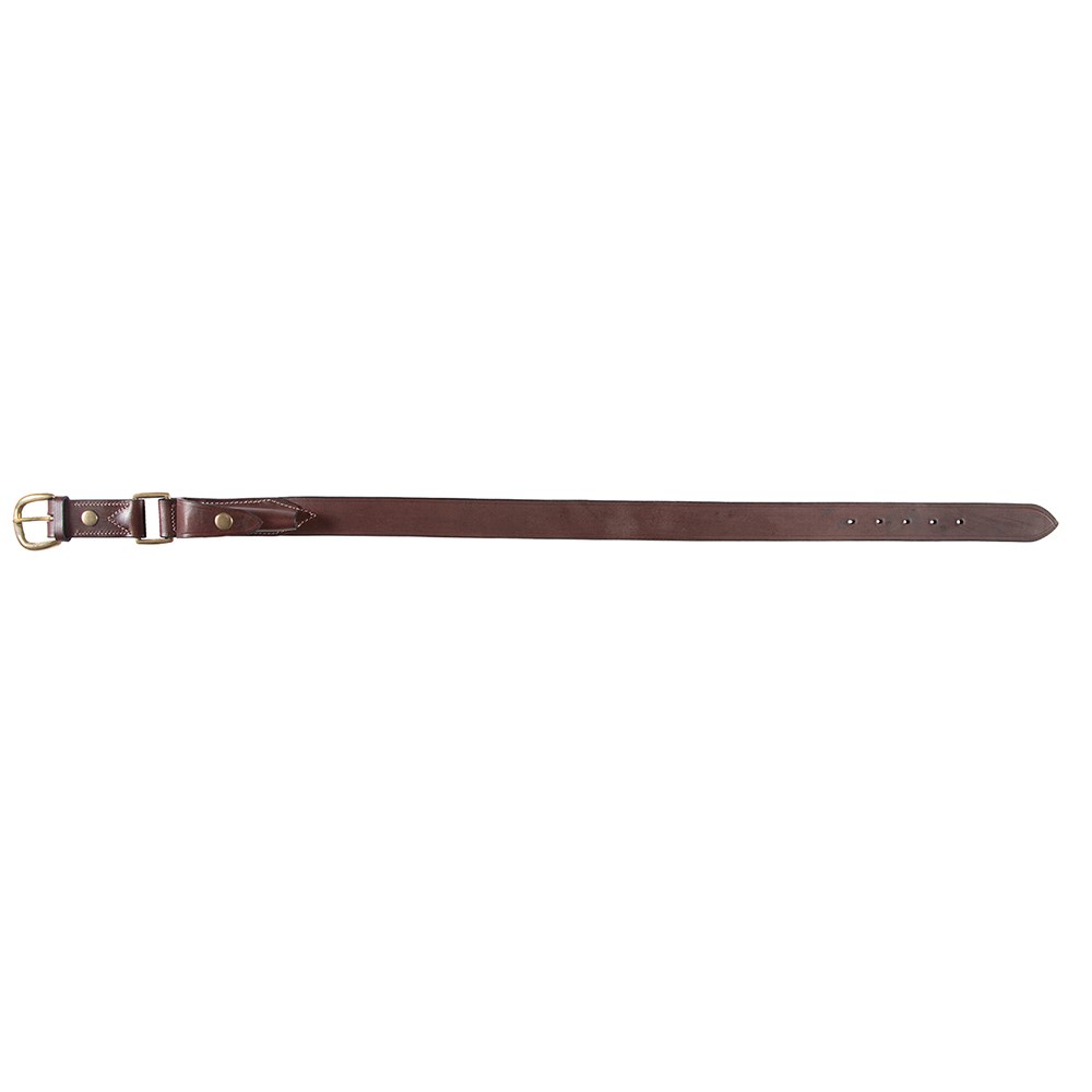• Handcrafted hobble belt style in brown top grain leather with a press stud at the buckle, for ease of changing the buckle to suit a personal style.