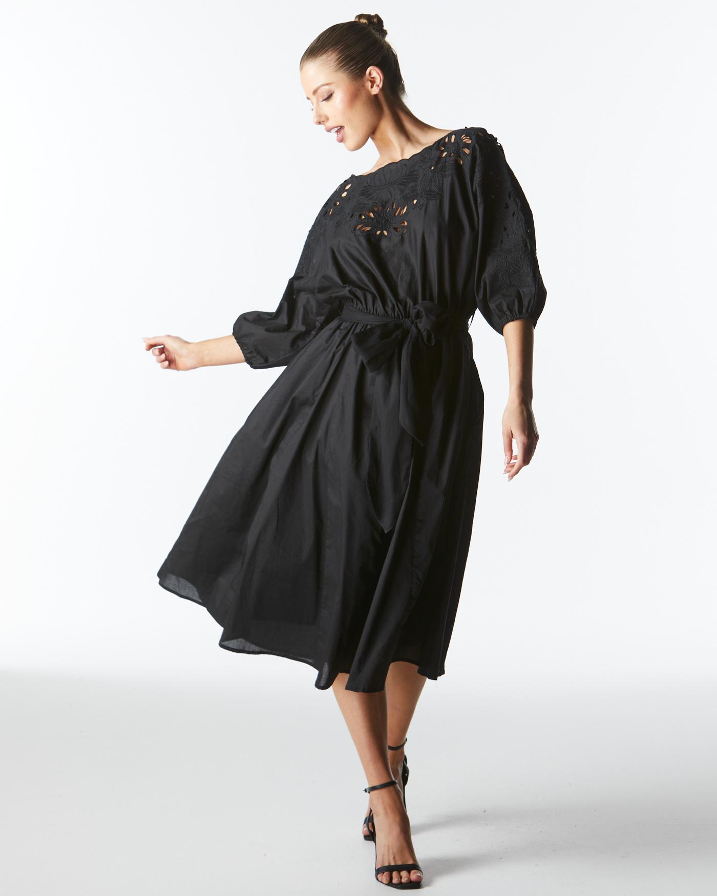 Lily Pond Black Embroidered Dress