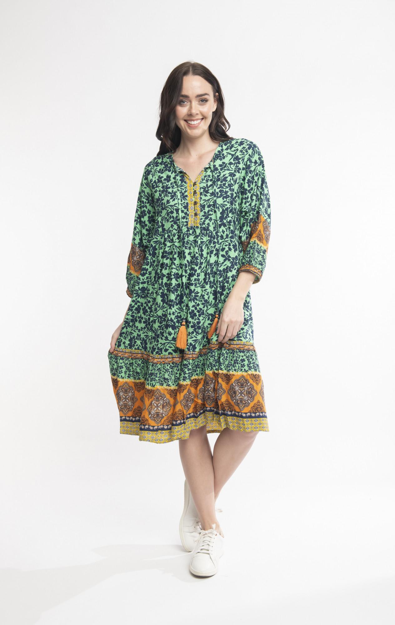 The Rigoletto boho dress is effortlessly elegant and chic. This dress features gathered detailing at the waist, a button-through bust, long sleeves, a midi-length skirt, and tassel strings at the neckline which add a relaxed, boho feel to the dress. This dress has been crafted from 100% sustainably sourced rayon, making it the perfect dress for the eco-conscious woman.
