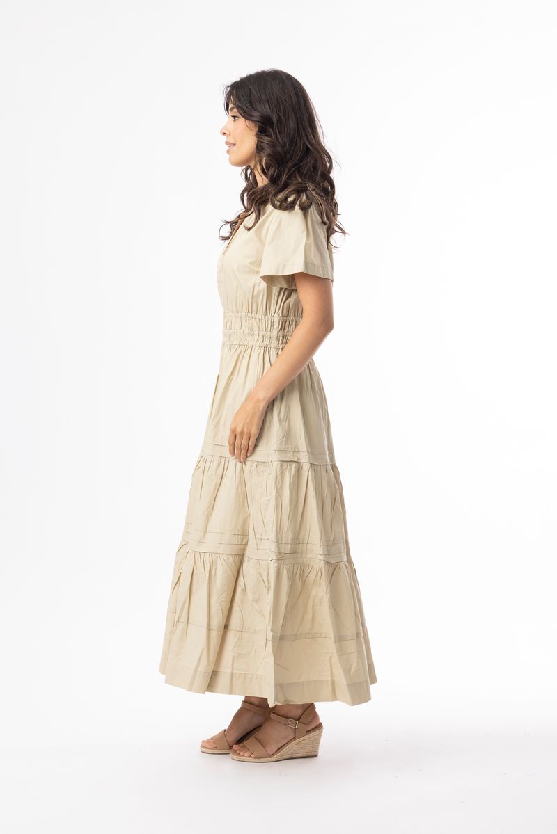 Sand Poplin Essentials Maxi Ruched Dress