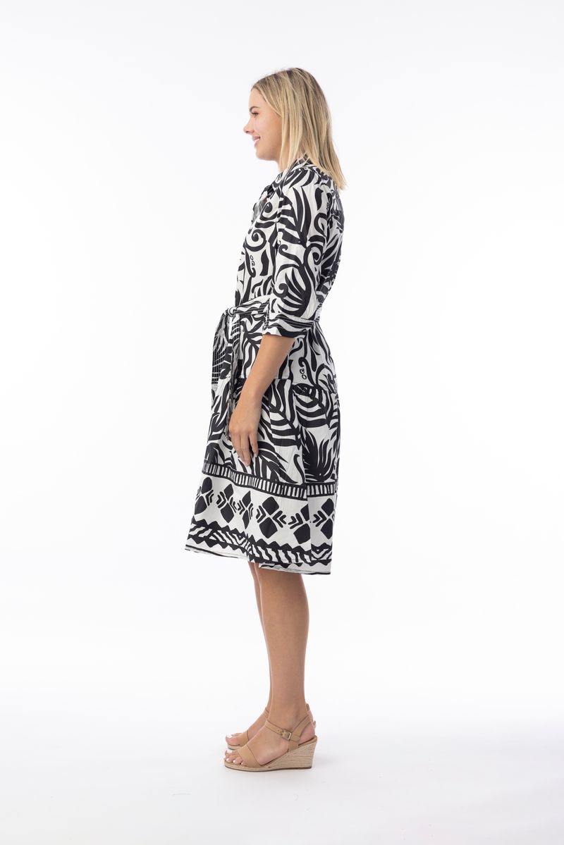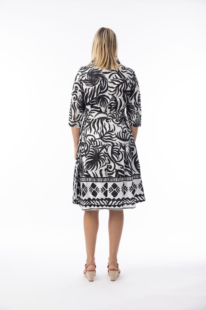 Look effortlessly chic with our Suriname Black Collar Dress. This dress features half sleeves, a classic collar with buttons at the bust, gorgeous colours, and a tie at the waist for shape. Its classy A-line silhouette makes it perfect for both casual outings and special occasions.