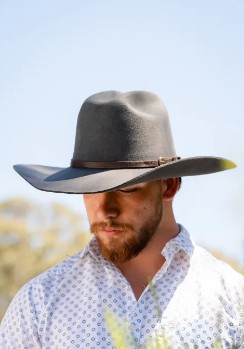 The Saddler Charcoal Wool Felt Hat is a timeless western classic, crafted from premium Australian wool felt for durability, structure, and everyday comfort. Its centre‑crease crown and distinctive cowboy turn edge create an authentic ranch silhouette, while the patterned leather band with buckle detail adds a touch of traditional western charm. With UPF50+ protection and a wide, shaping brim, the Saddler is built for long days outdoors, weekend adventures, and effortless country style.