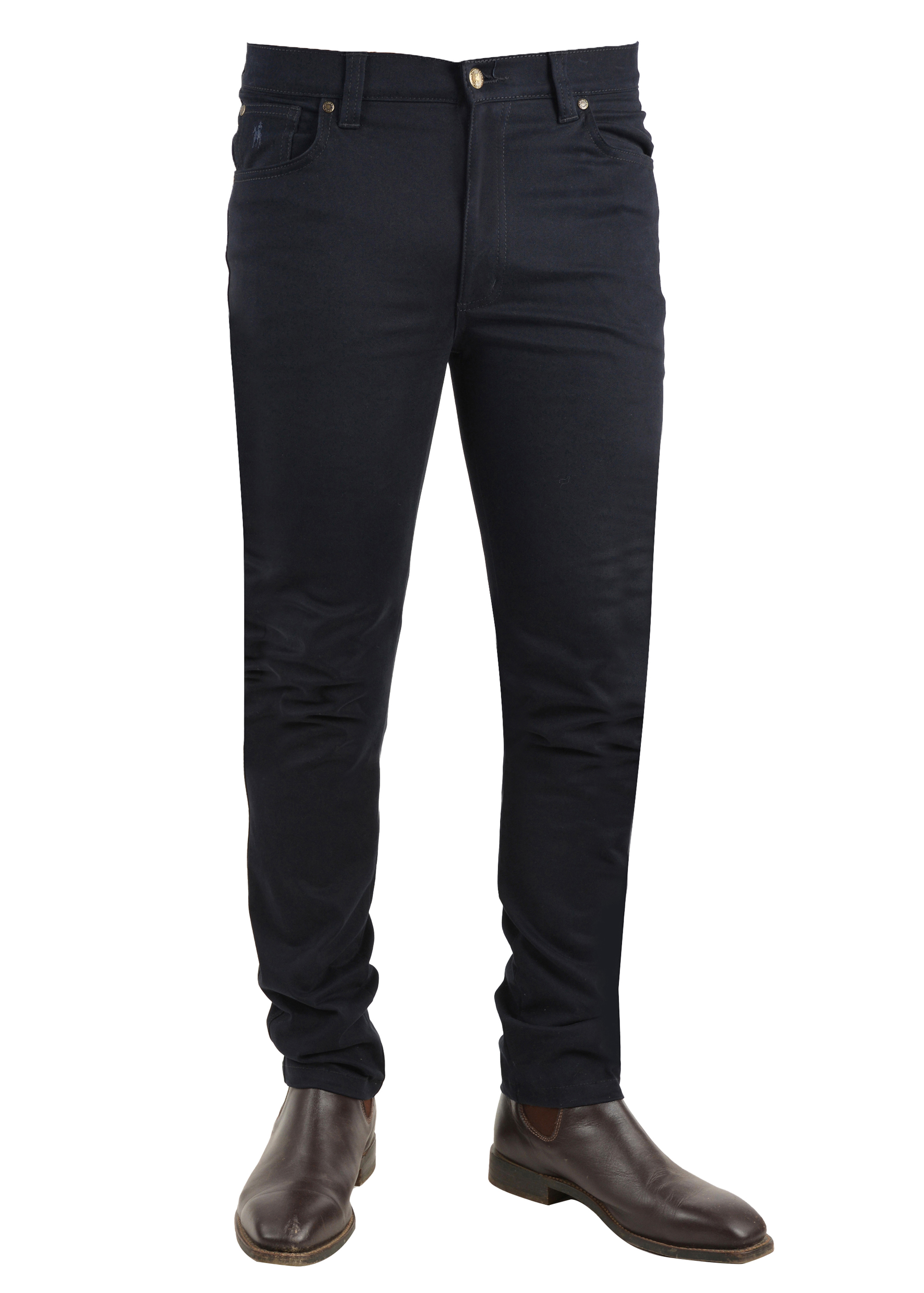 These Thomas Cook navy slim moleskin jeans bring a polished, modern look with the comfort men reach for every day. Crafted from soft, durable moleskin with a smooth finish, they offer a refined alternative to denim while still being tough enough for country wear. The slim cut creates a clean, flattering shape without feeling tight, and the 32” leg keeps the fit classic and easy to style. Perfect for pairing with shirts, boots, and winter layers, these jeans transition effortlessly from work to weekend.