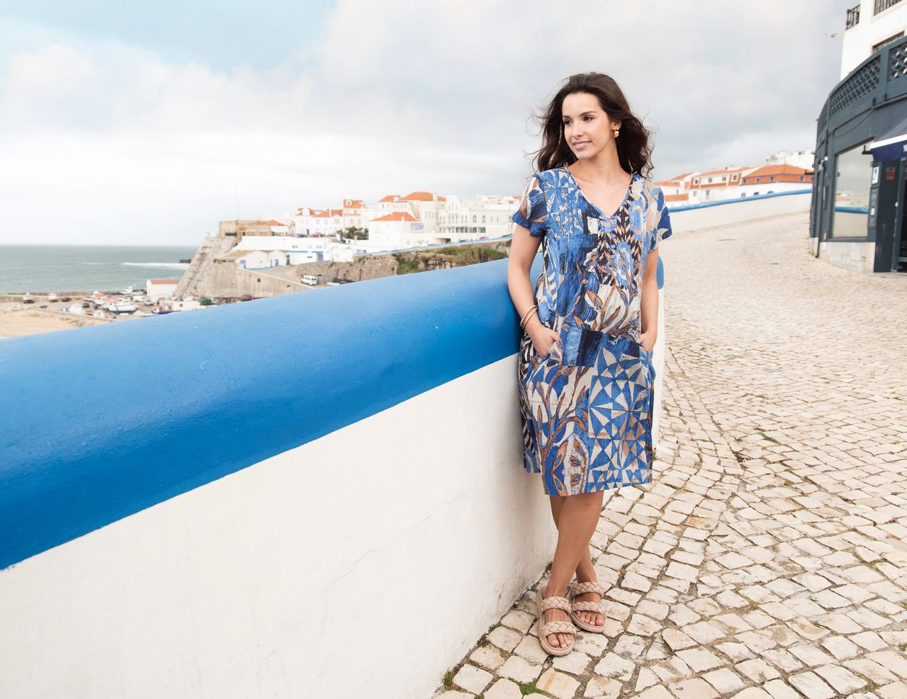 The V‑neckline and soft pleating at the bust create a gentle shape without clinging, while the cap sleeves add a touch of coverage and femininity. Perfect for warm days, casual outings, or relaxed weekends, this dress is your new go‑to for simple, stylish dressing with all‑day comfort.
