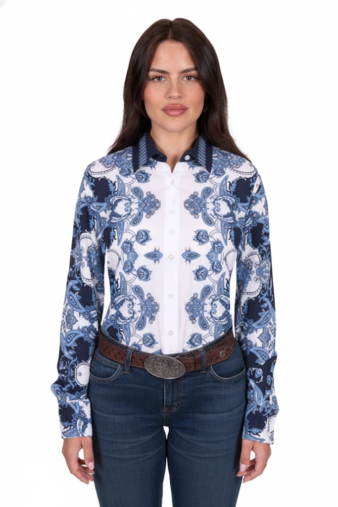 Classic button-down long-sleeve shirt, button closure, Wrangler® logo pip on side seam, soft hand feel and drape.
