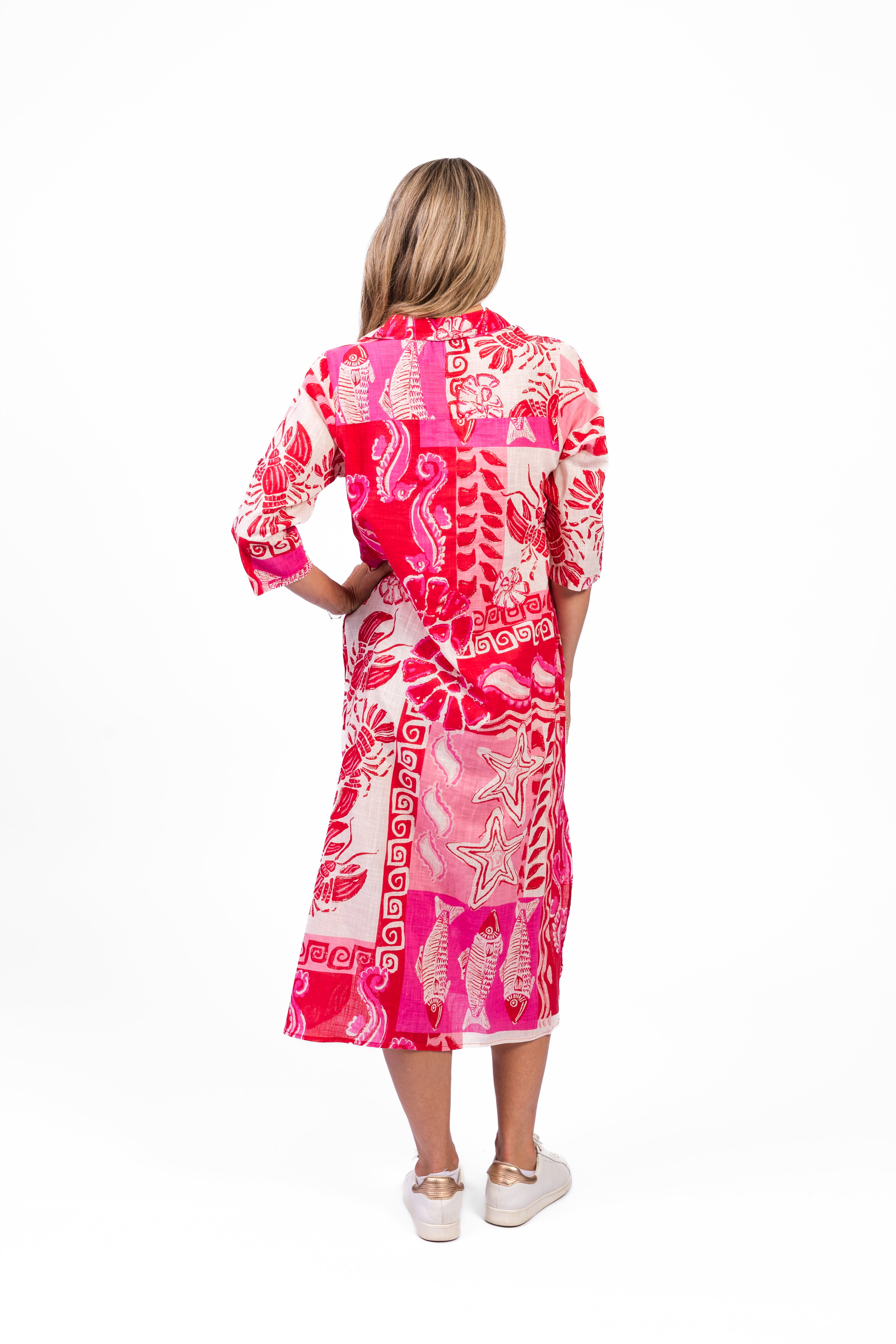 Introducing our summer staple Sofia made from cotton slub, this dress creates the feeling of comfort and versatility. Designed with the classic pinstripe pattern, Sofia is a perfect mix or feminine and chic! Featuring a collard neckline, built in pockets, ¾ sleeves, and button detailing. Making it a wardrobe staple.