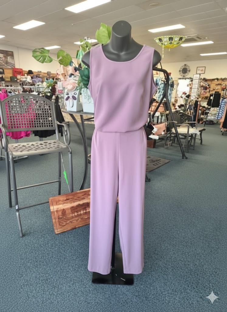 This cami has a round neckline and sleeveless. the material is polyester. The colour is mauve.